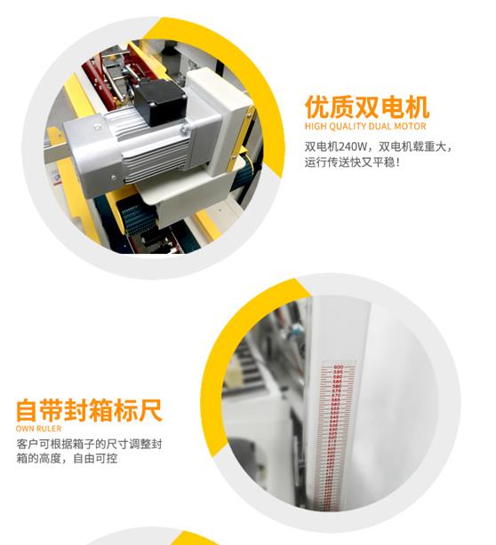 上下驅(qū)動一字型自動封箱機(jī)采用上下馬達(dá)驅(qū)動皮帶輸送封箱,上下皮帶驅(qū)動封箱穩(wěn)定性高。而且這款封箱機(jī)具有廣泛的用途,適用于紡織、日用百貨、家用電器、藥品、食品、化工、輕工等各種行業(yè)。本款自動封箱機(jī)可單獨(dú)進(jìn)行封箱作業(yè),亦可與充填、捆包配套成流流水線使用。